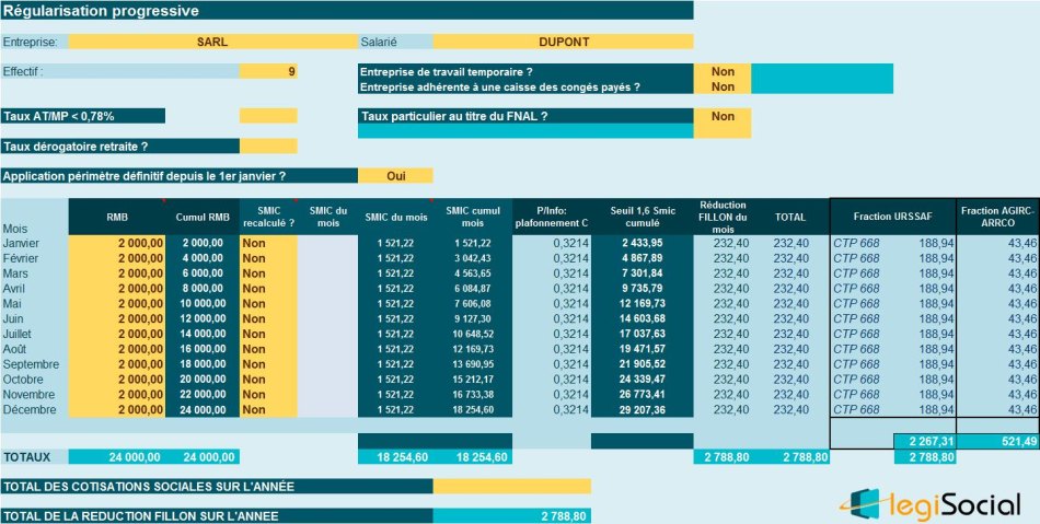 - Une réduction Fillon annuelle de 2.788,80 € ;