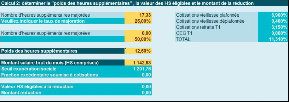 Les heures supplémentaires éligibles sont donc évaluées comme suit :