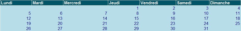 - La 1ère semaine est décomptée pour 6 jours;
