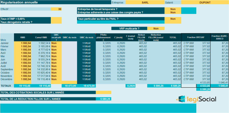 Si vous choisissez un mode de régularisation annuelle, vous obtenez alors: