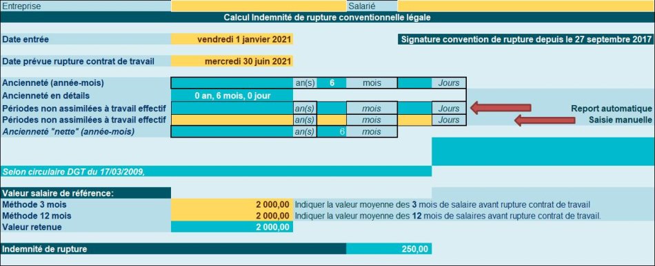 - Dans le cas où le salarié parti à la rupture conventionnelle ne remplit pas la condition d’ancienneté de 8 mois dans l’entreprise pour bénéficier de l’indemnité légale de licenciement ;