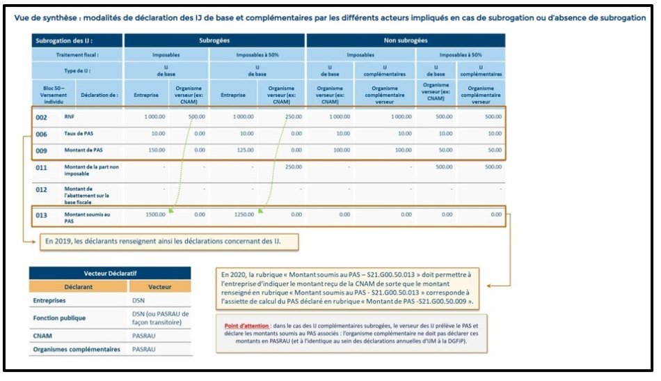 NB : par mesure de tolérance, il est autorisé de ne pas appliquer de PAS sur les IJ TPT (temps partiel thérapeutique) jusqu’en 2023.