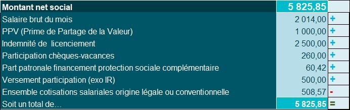 Tout en se rappelant que le montant net social prendra également en compte :