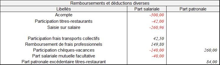 - La ligne « Autres » pourront indiquer les éventuels acomptes, saisie sur salaire, et autres remboursements de frais professionnels.