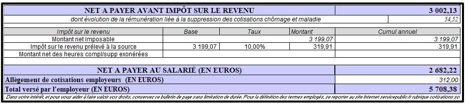 - Et enfin un net à payer après PAS de 2.682,22 € (3.002,13 € (net après retenues) moins 319,91 € (PAS).