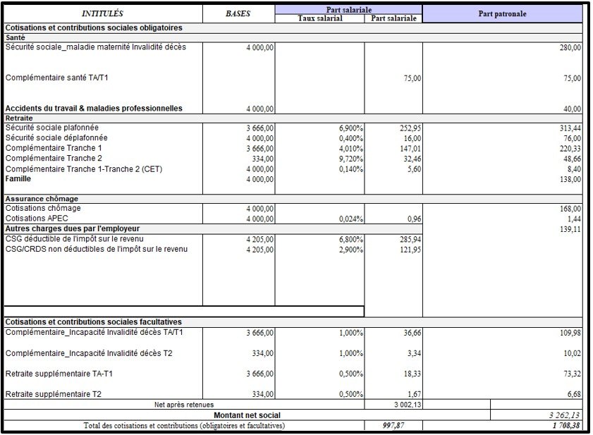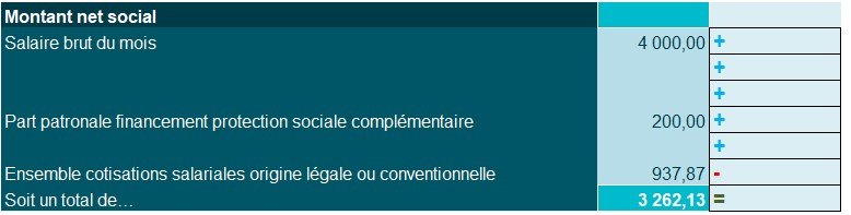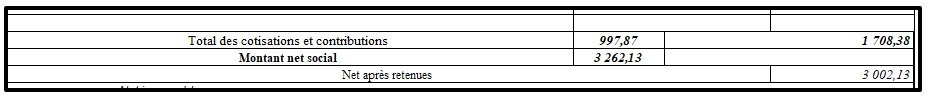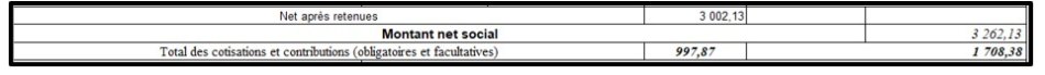 La présentation selon «la nouvelle maquette » indique un montant net social de 3.262,13 €, ainsi déterminé :