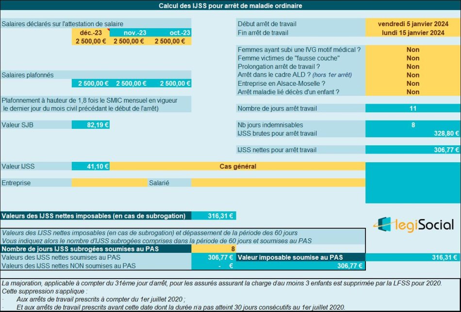 - IJSS recalculées = IJSS nettes / (1-t) (t correspondant au taux de cotisations salariales en vigueur).