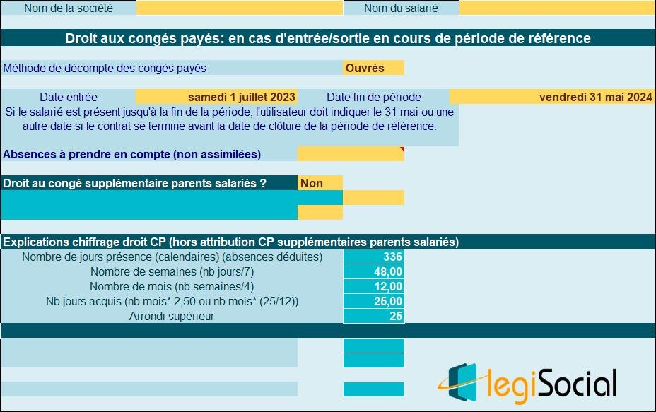 - Le droit aux congés payés est supposé chiffré selon la méthode des jours ouvrés.