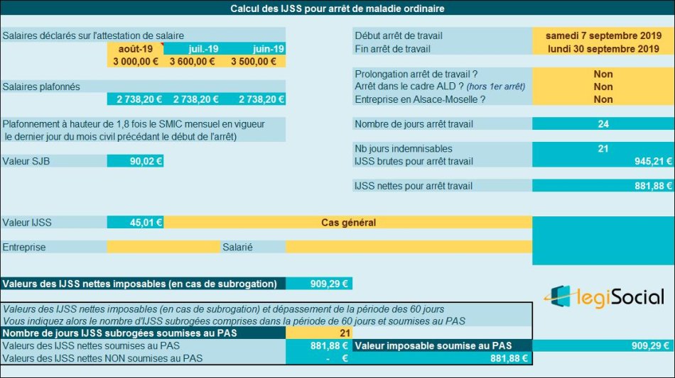 Les IJSS sont calculées de la manière suivante :