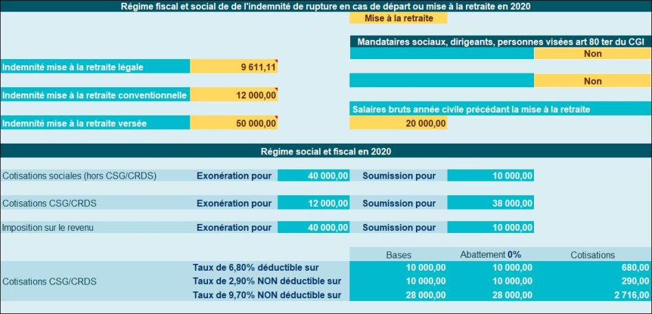 - Traitement fiscal et social de l’indemnité lors d’un départ à la retraite en 2025 : exemple chiffrés
