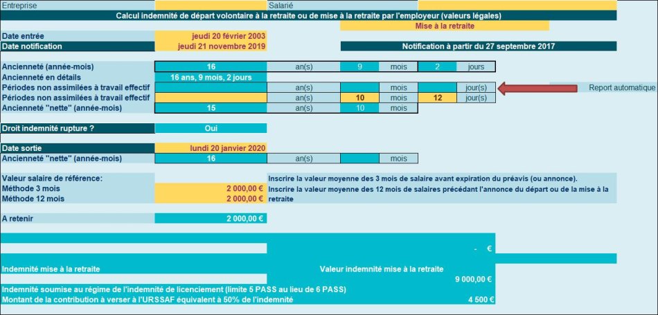 Son ancienneté « nette » devient alors : 15 ans et 10 mois, permettant l’ouverture du droit à l’indemnité de mise à la retraite.