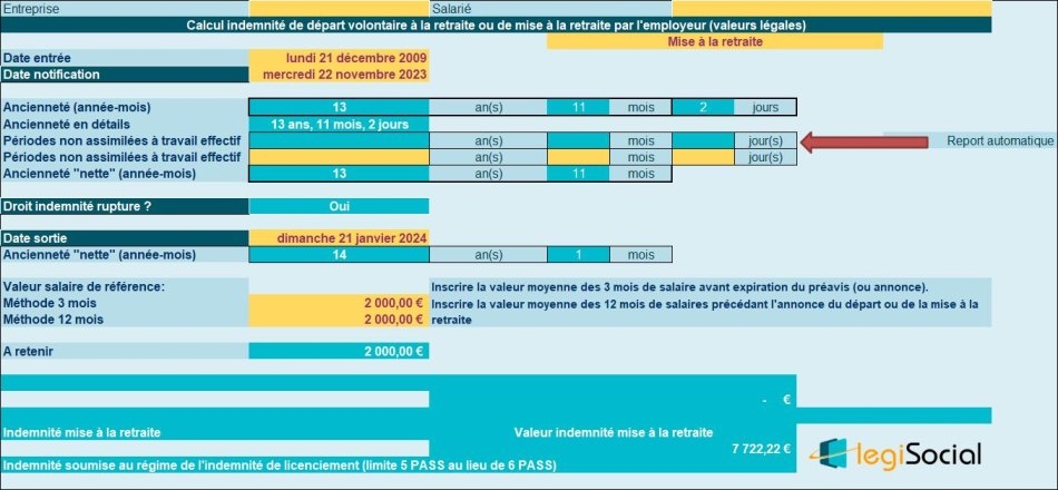 Son ancienneté « nette » devient alors : 16 ans permettant l’ouverture du droit à l’indemnité de mise à la retraite.
