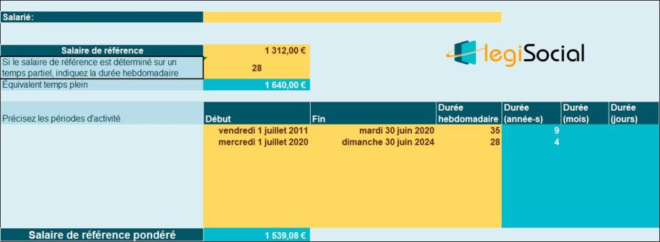 Puis nous calculons l’indemnité pour la partie à temps partiel comme suit :