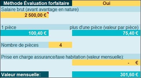 Ensuite la valeur de la redevance est prise en compte, afin de déterminer la valeur de l’avantage en nature logement comme proposé ci-dessous :