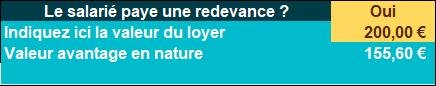 Ensuite la valeur de la redevance est prise en compte, afin de déterminer la valeur de l’avantage en nature logement comme proposé ci-dessous :