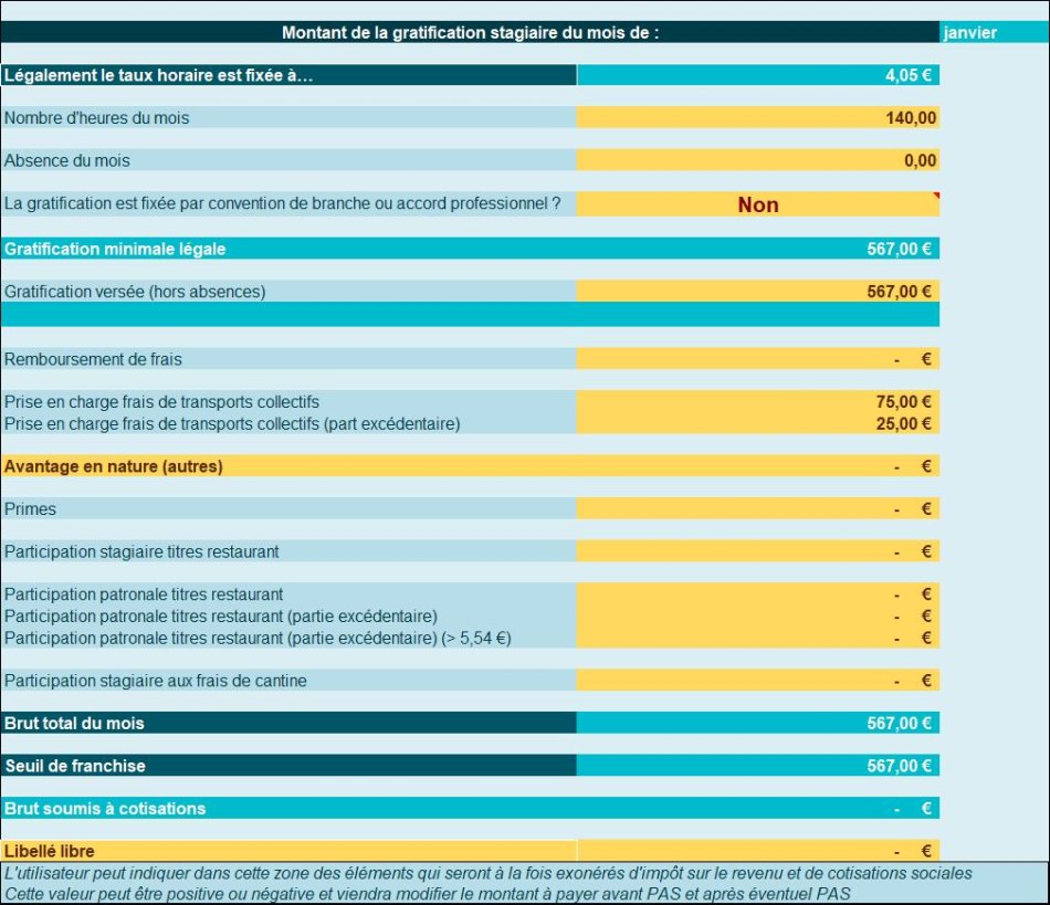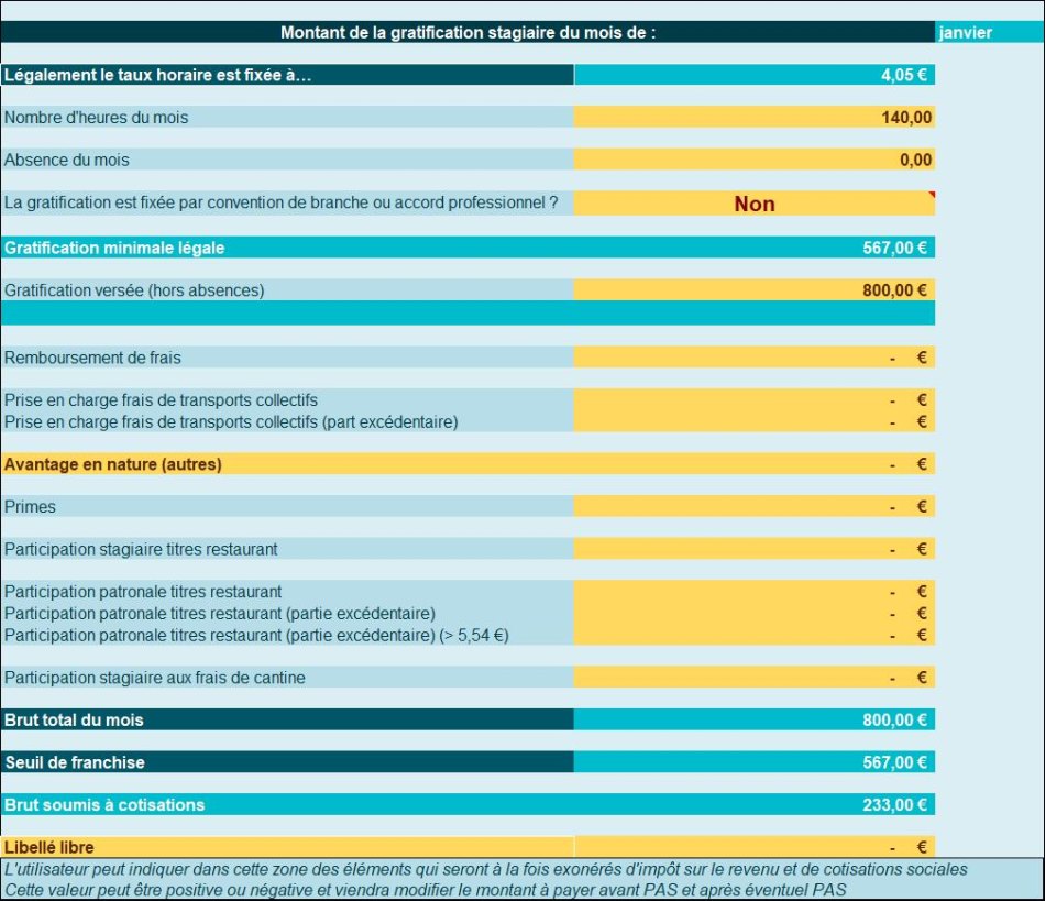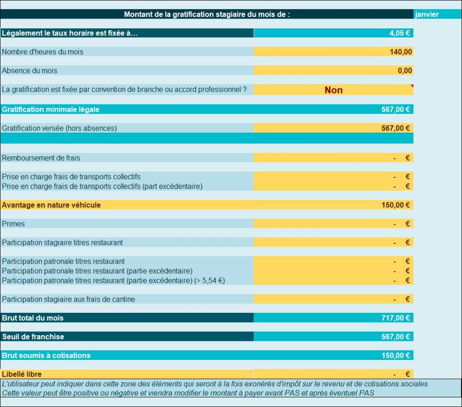 - La gratification versée est supposée être à hauteur de la gratification minimale légale.