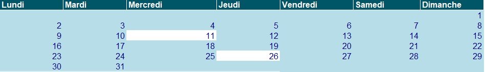 - Les absences sont décomptées selon la méthode des jours ouvrés réels du mois ;
