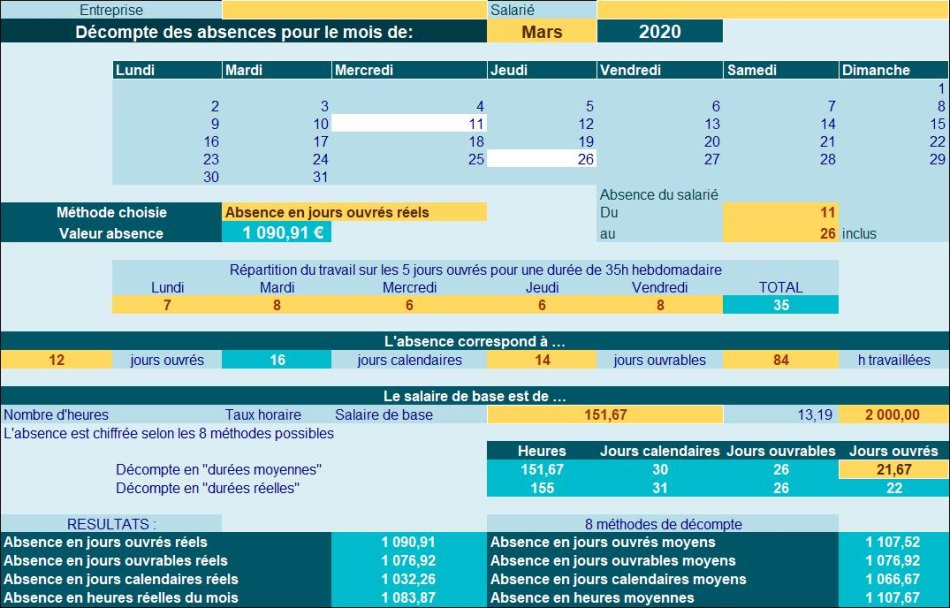 Chiffrez les absences du salarié selon les 8 méthodes utilisables avec notre outil pratique