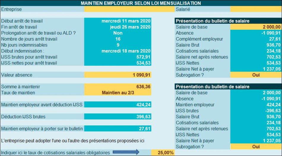 Nota : le calcul du maintien se fait selon la même méthode que le décompte de l’absence.