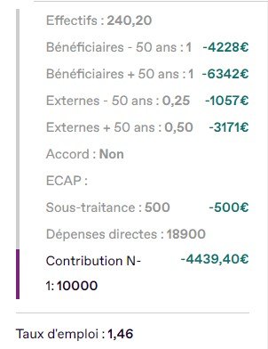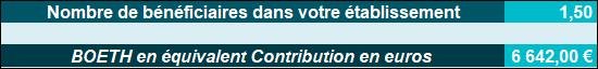 Nous supposerons qu’un seul bénéficiaire a été recruté sur l’année 2022, soit 1,50, donnant lieu au calcul suivant :