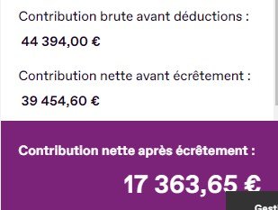 Le montant à retenir correspond à 30% du coût total de la main d’œuvre, soit présentement dans notre exemple chiffré 500€.