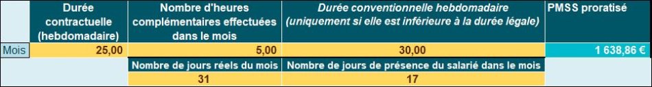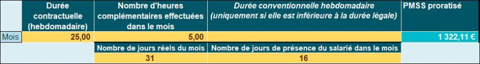 | Temps numéro 1 : Déterminer le PMSS en raison d’une activité à temps partiel et d’heures complémentaires :