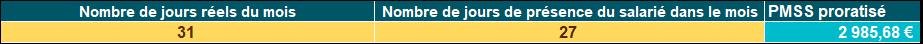 Temps numéro 2 : Déterminer le PMSS en raison d’une entrée en cours de mois et d’une absence ne donnant lieu à aucune rémunération.