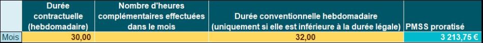 - PMSS applicable= PMSS temps plein *(durée contractuelle/durée conventionnelle) ;