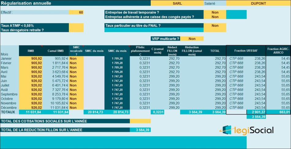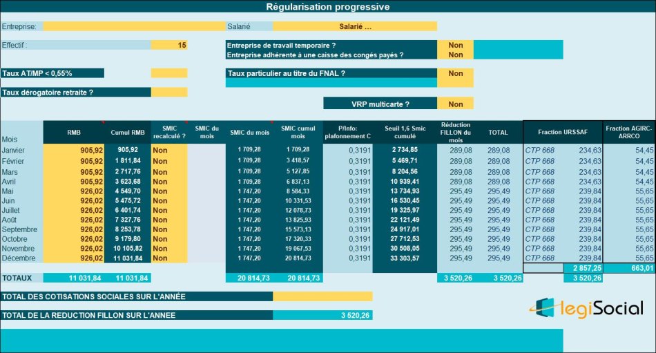 Une régularisation se fait en fonction des réductions calculées sur les mois précédents avec la somme des SMIC mensuels et des RMB.