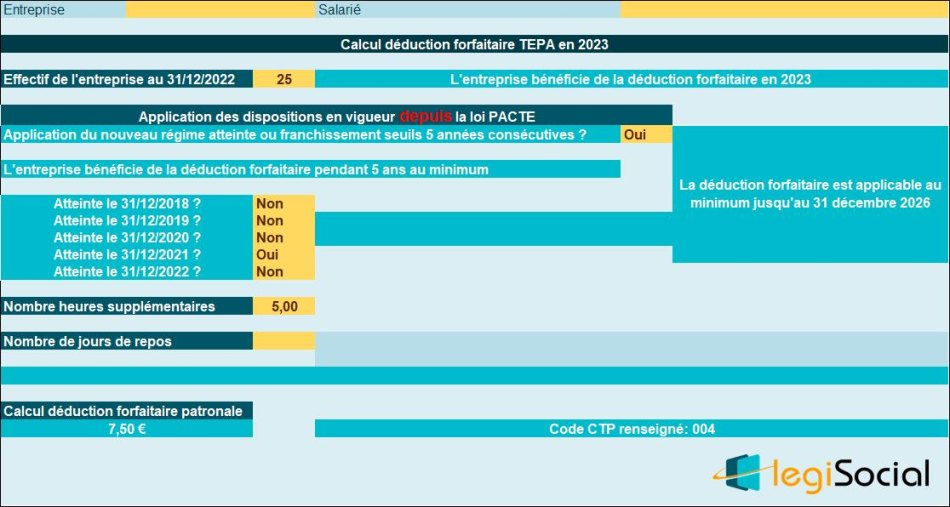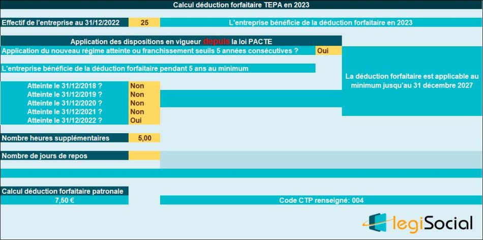 - Calcul de la déduction forfaitaire TEPA en 2025 : exemples chiffrés pour effectif inférieur à 20 salariés