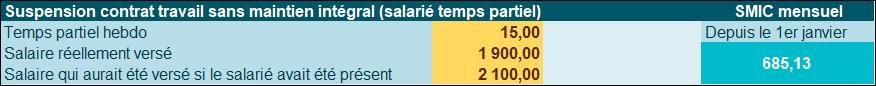 La fraction du Smic correspondant au mois où le contrat est suspendu est prise en compte, comme si le salarié était présent dans l’entreprise.