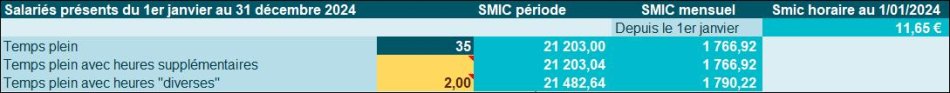 - Aucune heure supplémentaire n'est constatée, 30h < durée légale.