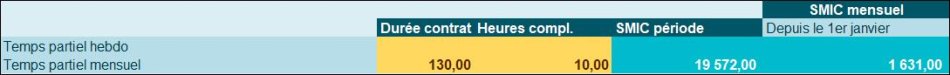 Le salarié est à temps partiel (130h/mois) et effectue 10 heures complémentaires dans le mois.