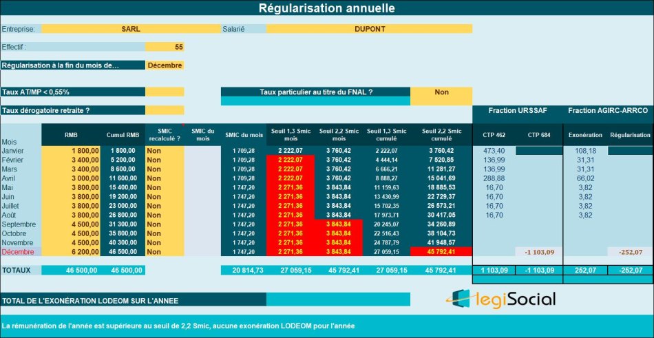 - La rémunération cumulée à la fin de l’année 2023 étant supérieure au seuil de 2,2 Smic annuel, aucune exonération LODEOM n’est alors possible.