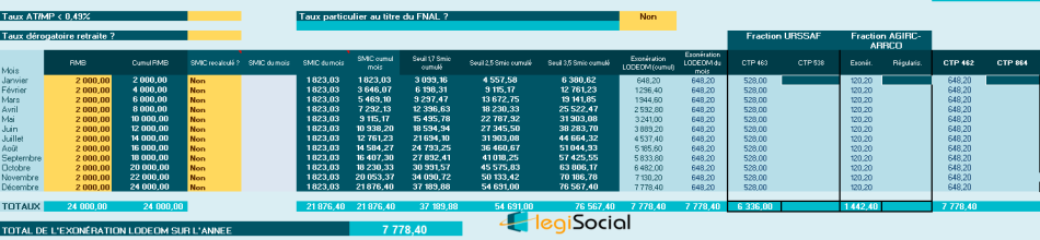 - Permettant de déterminer une exonération LODEOM de 24.000 € * 0,3241= 7.778,40 €