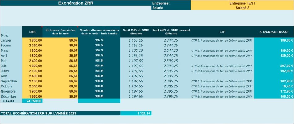 - L’exonération est déterminée selon le coefficient (T/0,9) *((2,4*Smic référence*1,5 nombre d’heures rémunérées/rémunération mensuelle brute) -1,5).