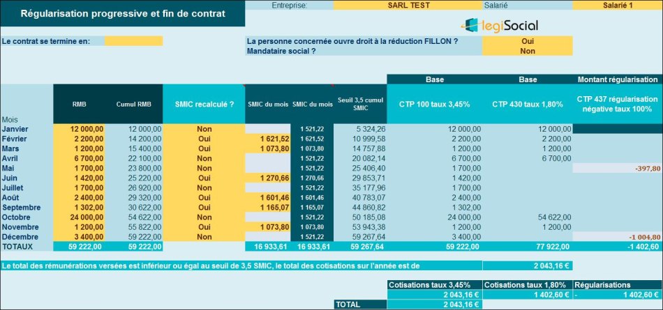 Sur l’année 2019, la rémunération brute est inférieure au seuil de 3,5 Smic, aucune cotisation majorée ne doit être appliquée sur l’année, des régularisations progressives sont donc effectuées sur les mois de mai et décembre 2019.